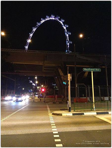 也剛好因為如此,可以深夜在新加坡街頭逛大街,看到世界最大的Singapore Flyer一角