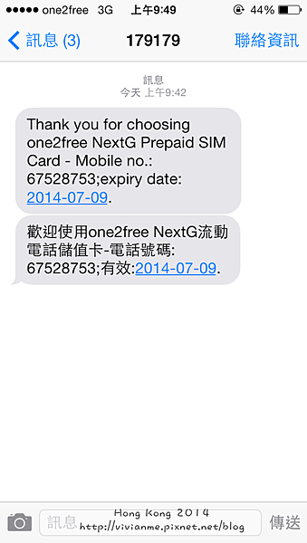 現場開通後,會馬上收到簡訊及顯示當地號碼