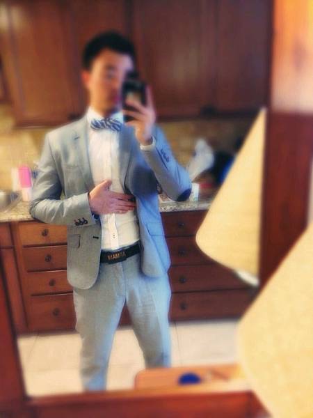 莫里斯的西服照,除了褲子回國再改窄版及長度外 整體來說算是很合身