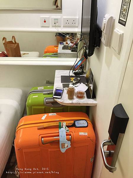 所以房間內的活動範圍僅床上及廁所而已,而我們的兩咖大行李箱是完全無法在走道打開的