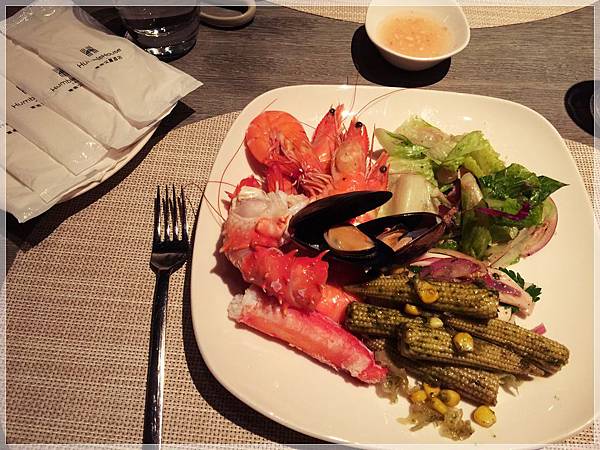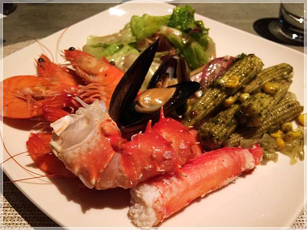 像是尼斯沙拉、新鮮淡菜、酸辣透抽沙拉、朝鮮鮮蝦佐柳橙油醋、無花果沙拉...等等