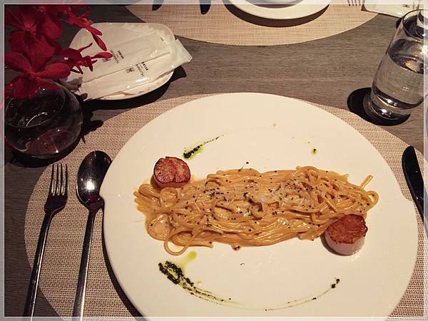[經典海膽魚子醬搭乾煎北海道干貝義大利麵]