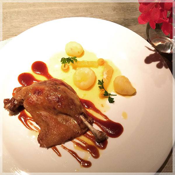 [油封鴨腿佐蜂蜜柳橙醬汁]