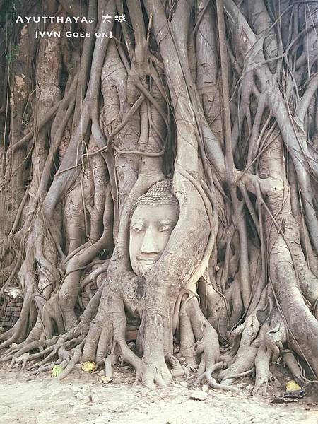 但遭遇許多不測及不幸,後來把佛頭丟回來... 就被這棵菩提樹包住形成了奇觀。